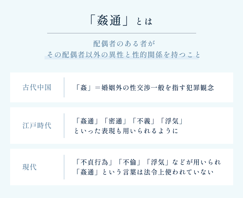 「姦通」という言葉は、近年は日常的に使われることも少ない言葉なので、耳慣れない方も多いかもしれません。