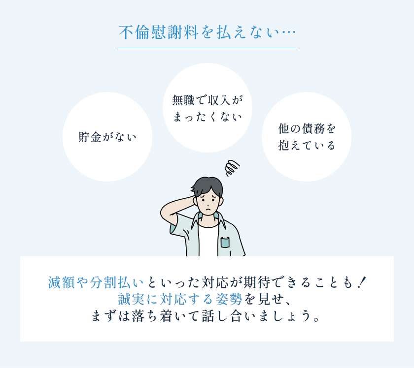 不倫が原因で慰謝料を請求されたものの、さまざまな事情から「慰謝料を払えない」という人は少なくないでしょう。