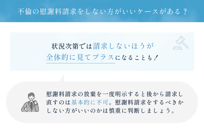 このように、個々の状況に応じて、慰謝料請求をしない方がいいケースが考えられます。