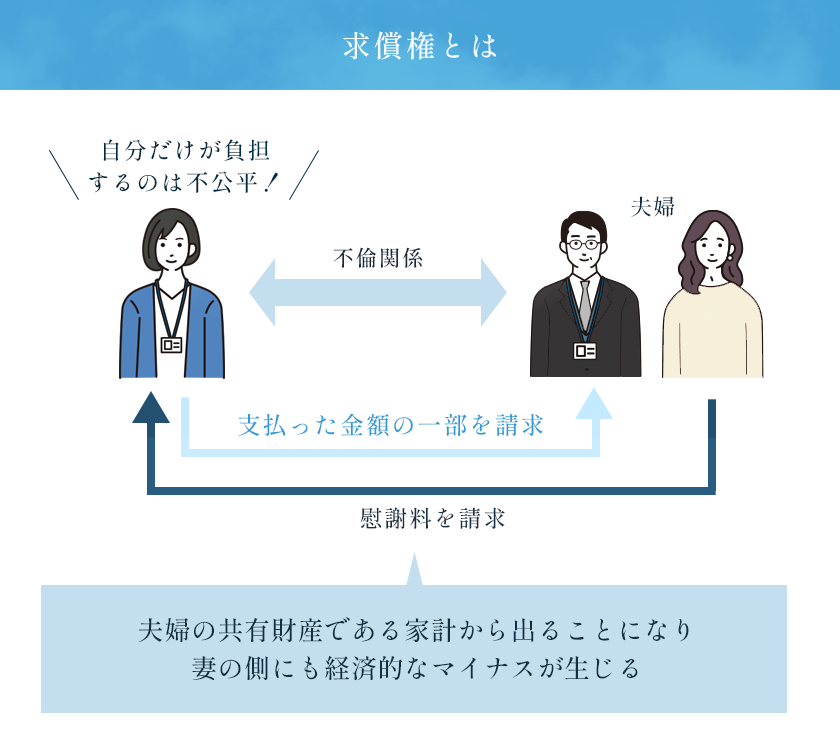 夫が求償に応じて慰謝料の一部を負担する場合、それが夫婦の共有財産である家計から出ることになってしまえば、実質的に妻の側にも経済的なマイナスが生じることとなってしまいます。