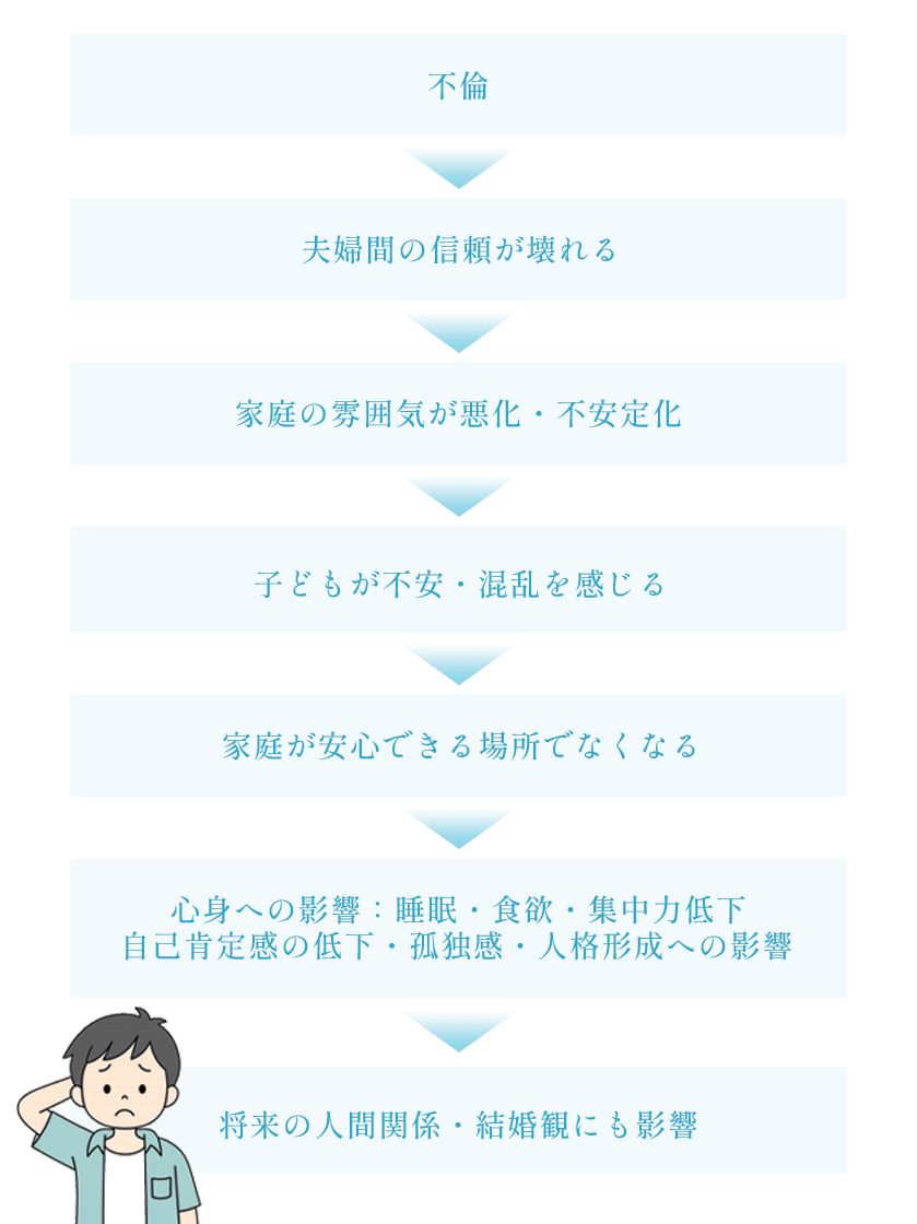 不倫は夫婦間の信頼を壊すだけでなく、子どもに対しても深刻な影響を及ぼすことになります。